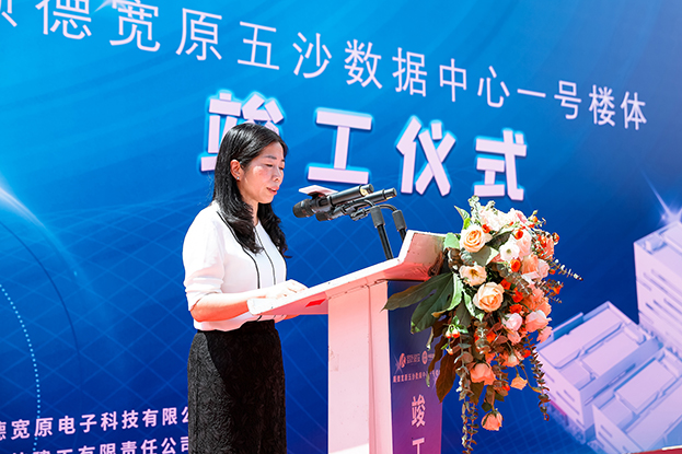 CDCC技術委員會專家組專家鄧重秋女士代表中國電子工程設計院世源科技有限公司對五沙(寬原)數據中心成功竣工表示熱烈祝賀,從專業技術角度解讀寬原科技為“綠色、節能”付出的巨大努力,并表示這是國家信息系統執行雙碳政策的重要舉措。
